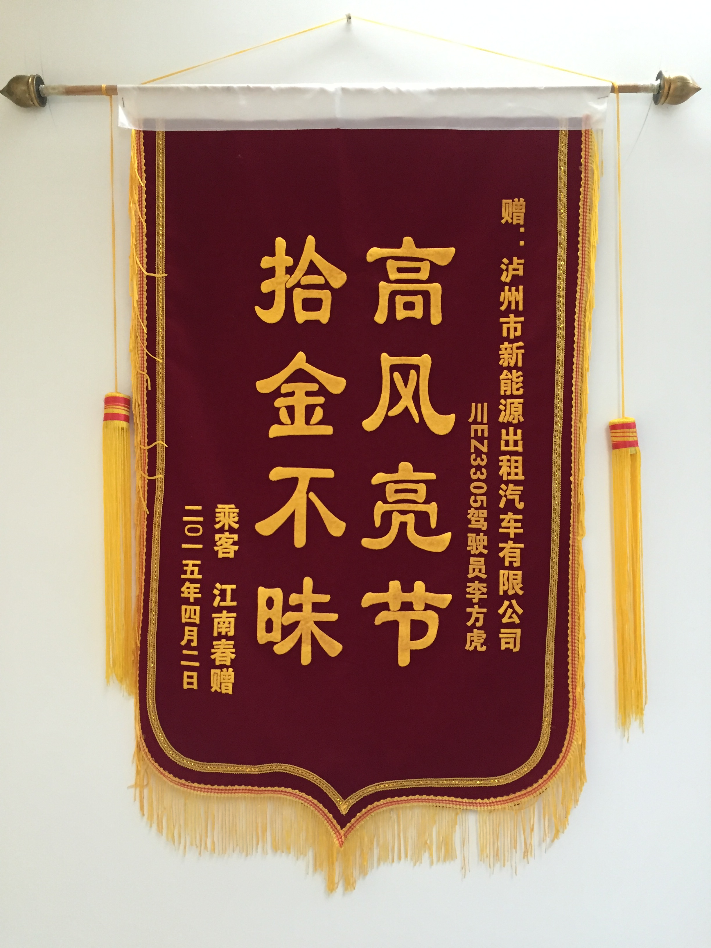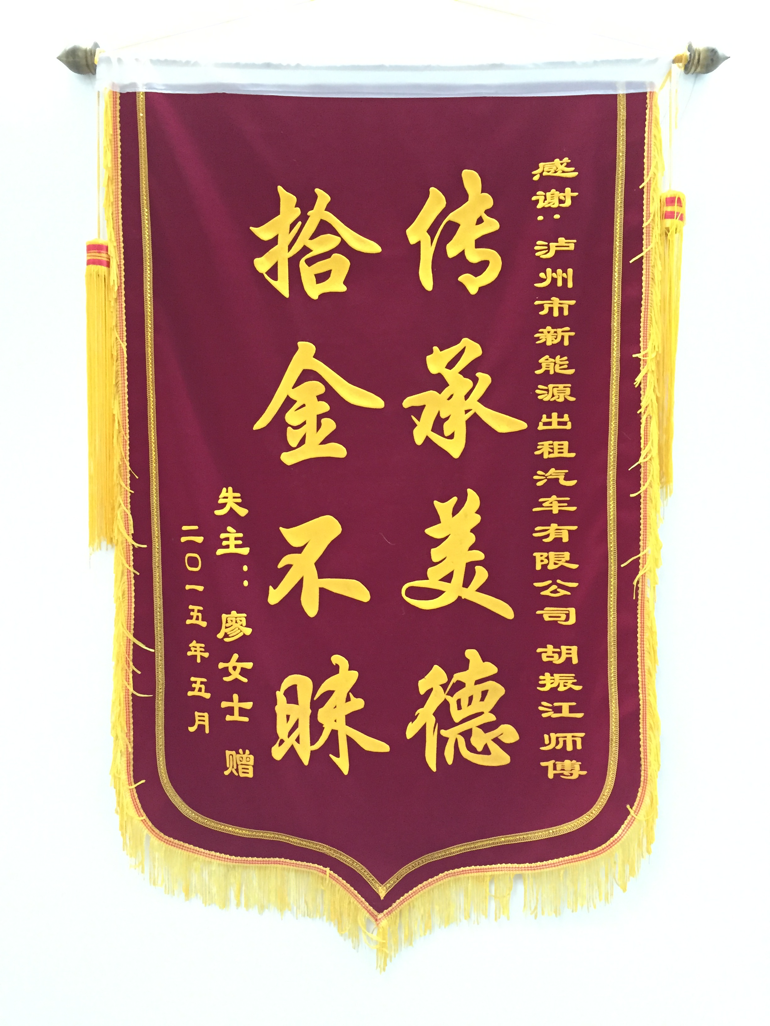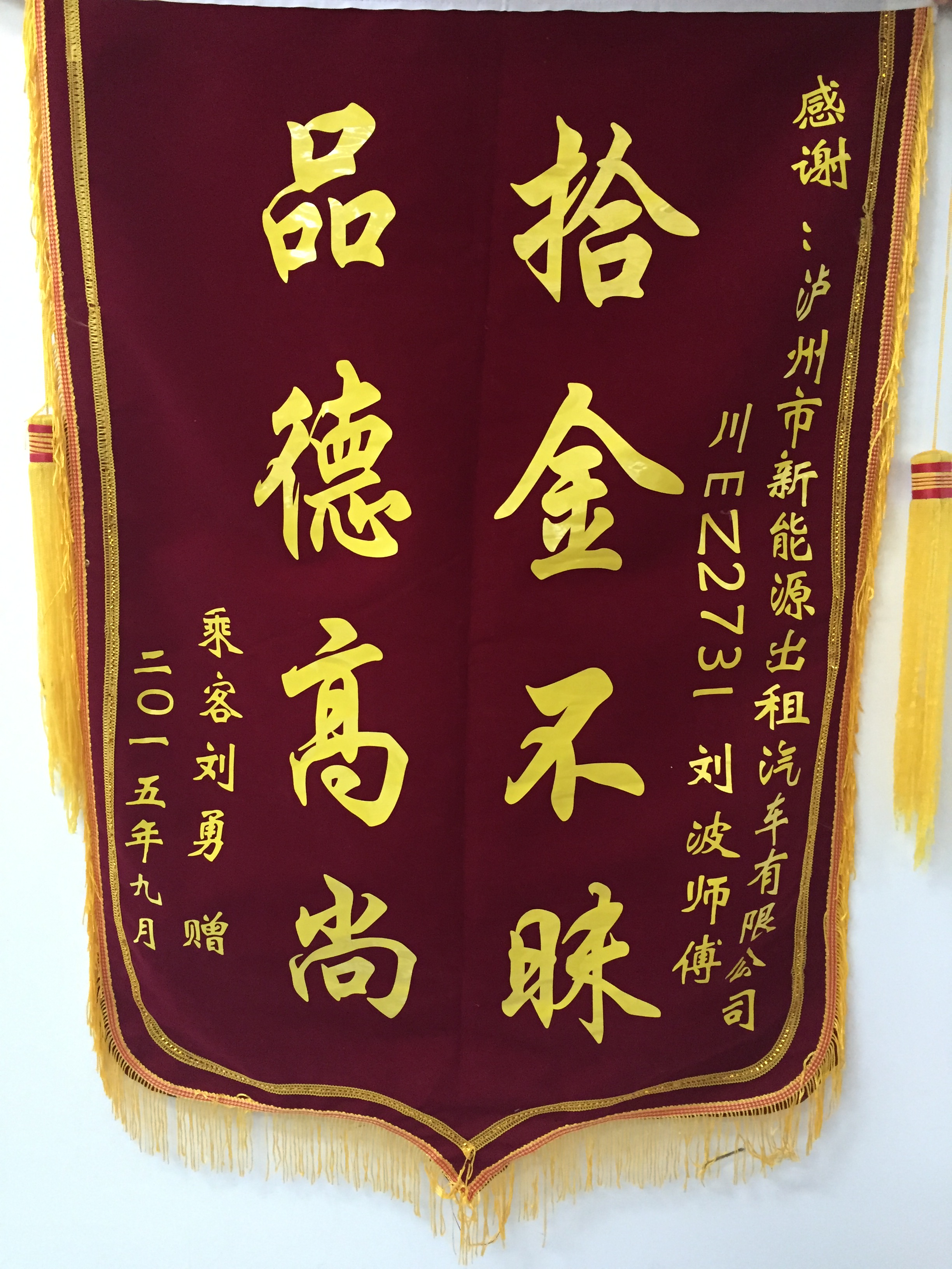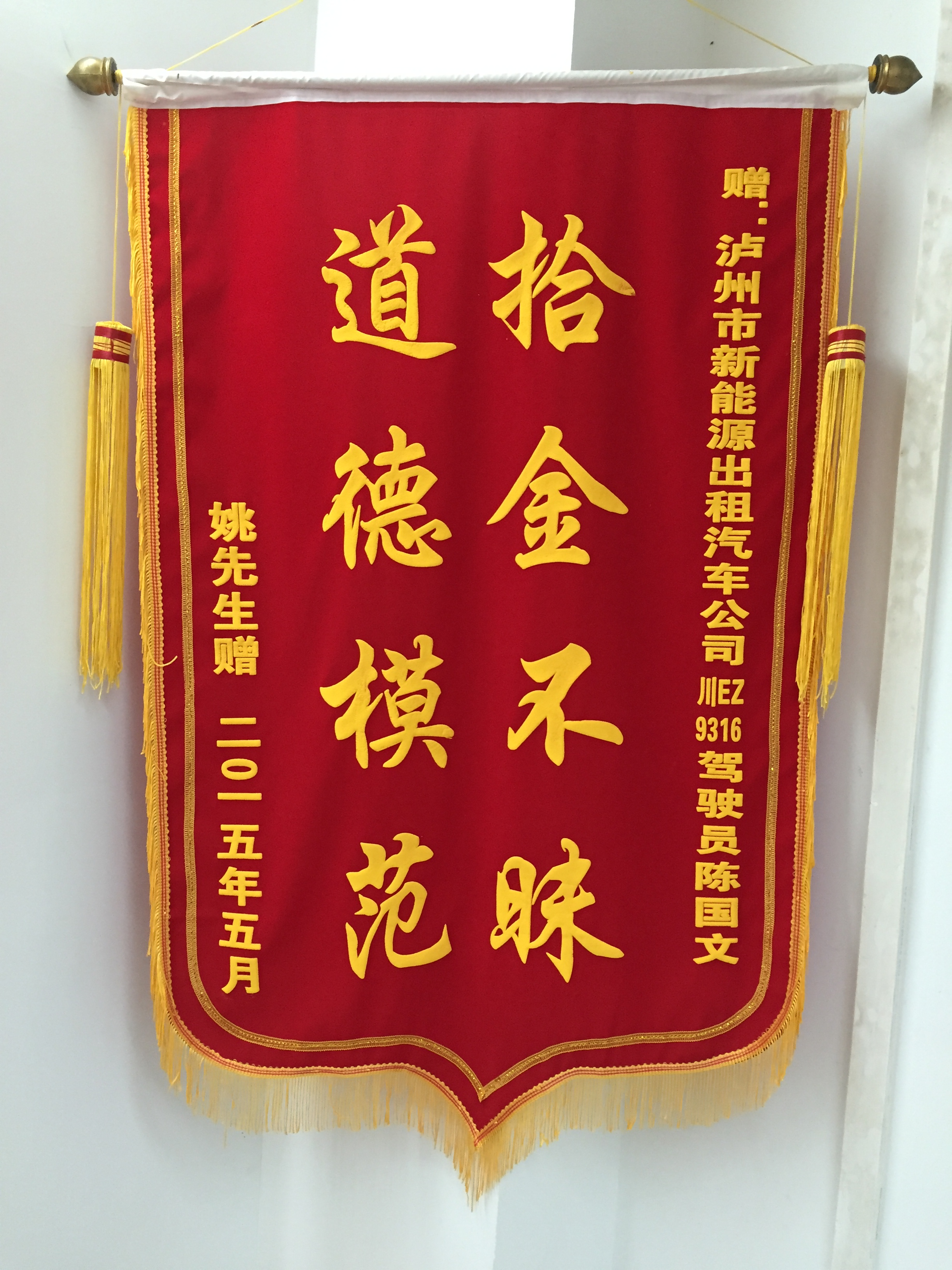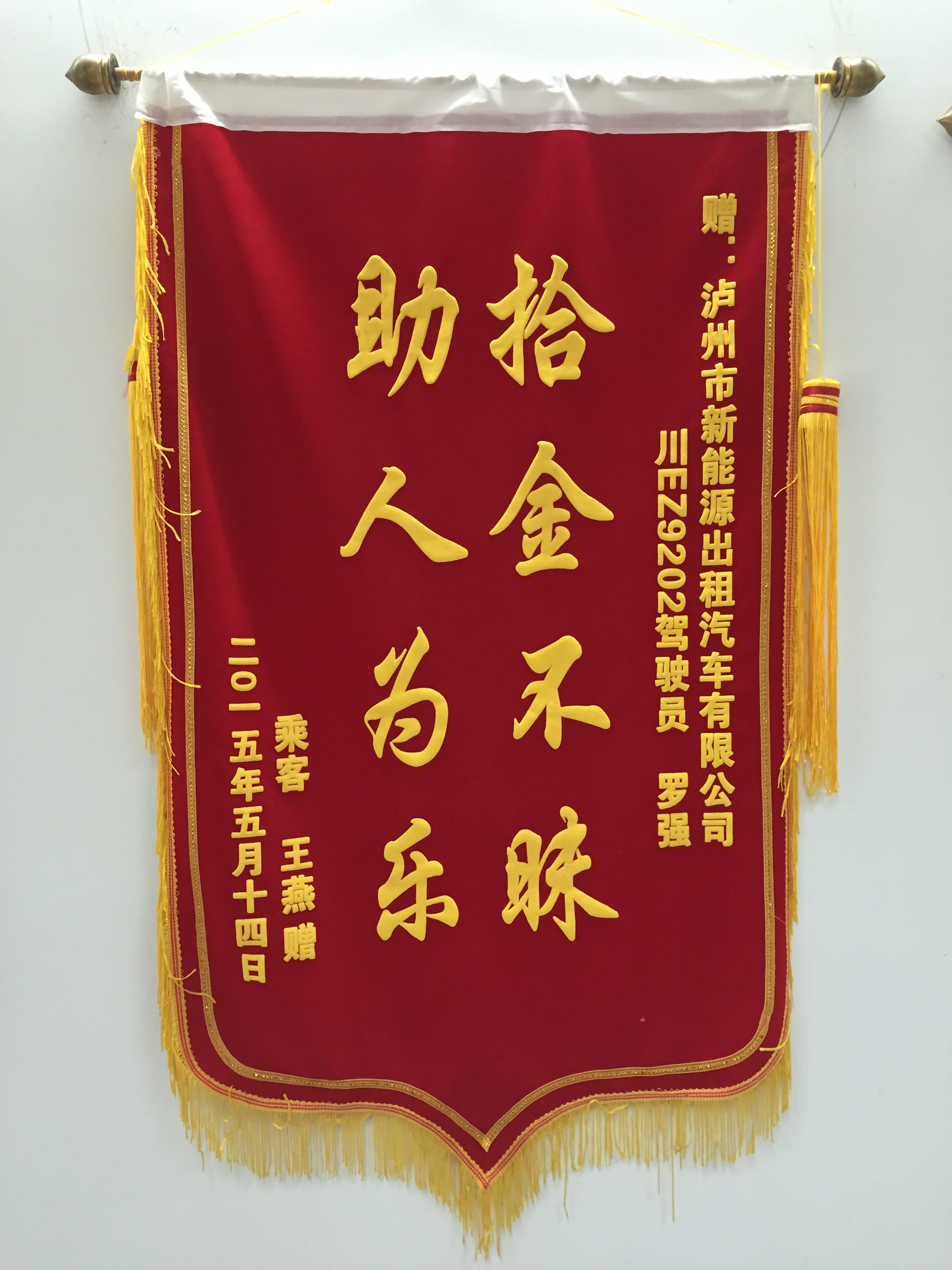 川EZ9202駕駛員羅強(qiáng)于5月7日撿到乘客王燕重要資料,及時(shí)交還乘客。乘客送來錦旗感謝