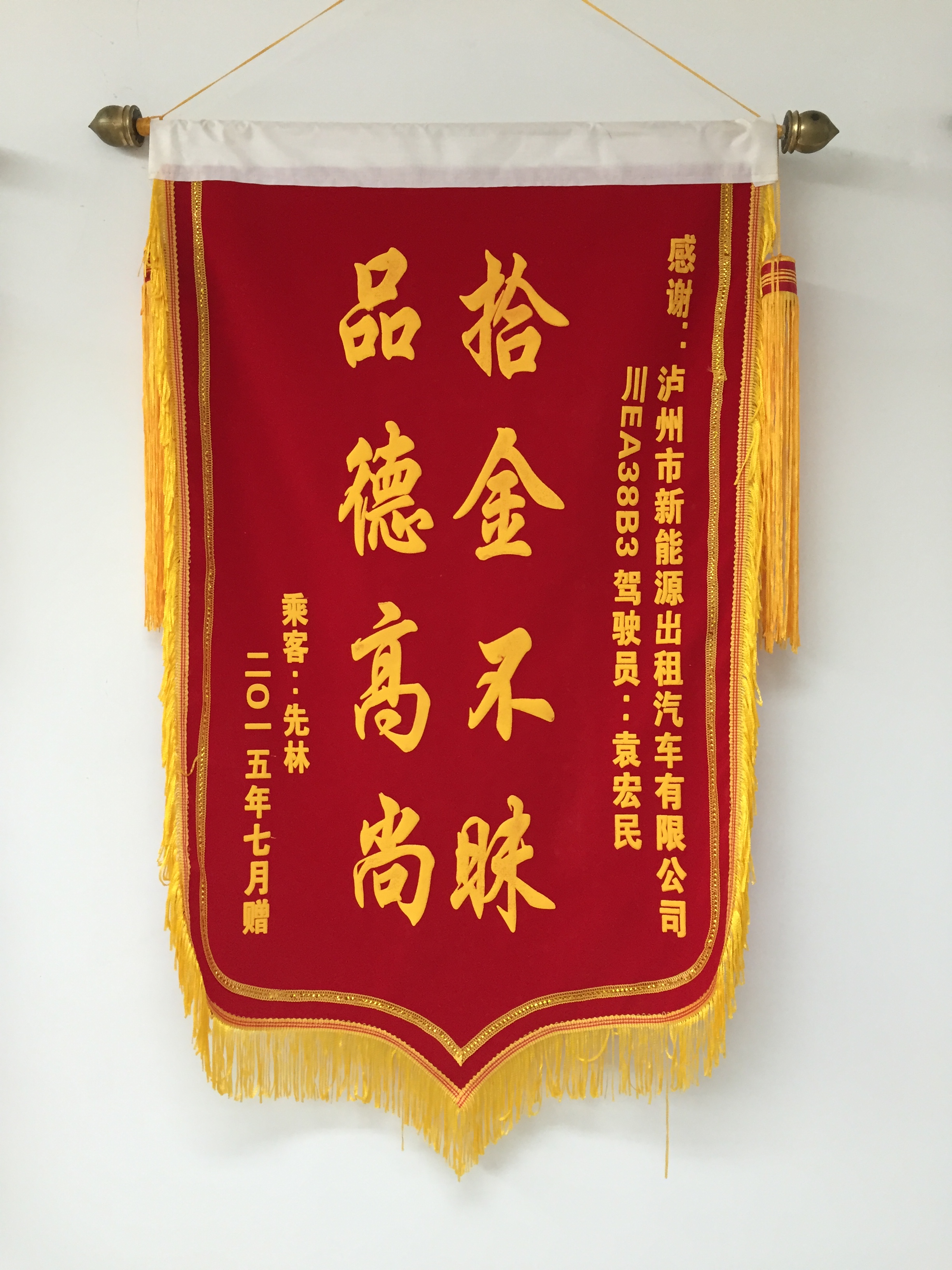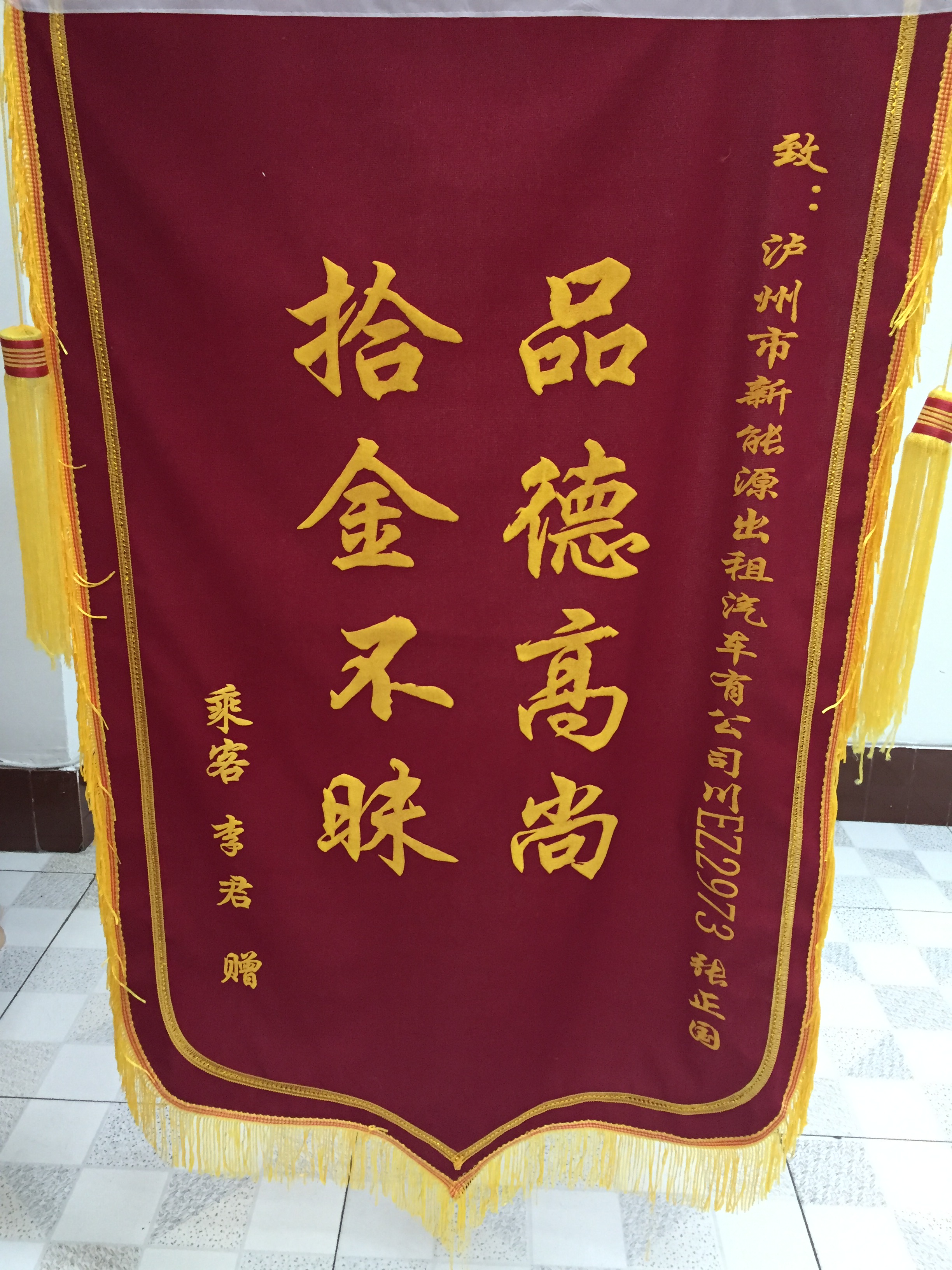 川EA38B3駕駛員袁宏民7月30日拾到三星手機(jī)一部,已交還乘客。乘客送來錦旗感謝