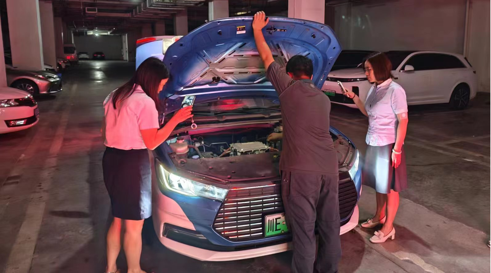 此次排查主要是委托比亞迪4S店專業(yè)技術人員利用專業(yè)檢測設備對車輛三電進行了全面細致的檢查。重點檢查電池的外觀是否有鼓包、變形、破損和漏液等情況,并使用專業(yè)工具測量了電池的電壓、內阻和溫度,以評估電池的健康狀態(tài)。電機排查中,檢查了電機外殼有無裂縫、損傷和異物侵入,通過監(jiān)聽電機運行聲音和檢測振動情況,判斷電機是否正常工作。電控系統(tǒng)的排查包括線路連接是否正常、控制器工作狀態(tài)是否良好以及防水性能是否達標。此外,針對充電系統(tǒng),技術人員對充電接口進行了全面檢查,確保充電過程的安全可靠。