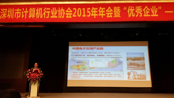 2016年1月7日,深圳市計算機(jī)行業(yè)協(xié)會2015年年會隆重舉行,受協(xié)會之邀,中國電子科技開發(fā)有限公司總經(jīng)理、北海市電子信息行業(yè)協(xié)會會長賀海華率中電科技旗下北海、西安、溫州園區(qū)參加盛會,賀海華與會員單位分享交流了中電科技建設(shè)產(chǎn)業(yè)園區(qū)板塊經(jīng)驗,介紹推介了各地方園區(qū)產(chǎn)業(yè)特點,衷心希望與各會員企業(yè)開展產(chǎn)業(yè)合作,歡迎來園區(qū)調(diào)研、拓展業(yè)務(wù),賀海華的精彩講解得到了參會嘉賓們的高度認(rèn)同與熱烈回應(yīng)。盛會間隙,北海、溫州、西安園區(qū)相關(guān)負(fù)責(zé)人和意向投資企業(yè)進(jìn)行了暢談,現(xiàn)場氣氛活躍,很多企業(yè)對中國電子投資建園的地區(qū)表達(dá)了合作意向,愿意進(jìn)一步加強了解與合作,其中,北海以獨特的區(qū)位優(yōu)勢、產(chǎn)業(yè)政策、生態(tài)優(yōu)勢,備受多家深圳企業(yè)重點關(guān)注。